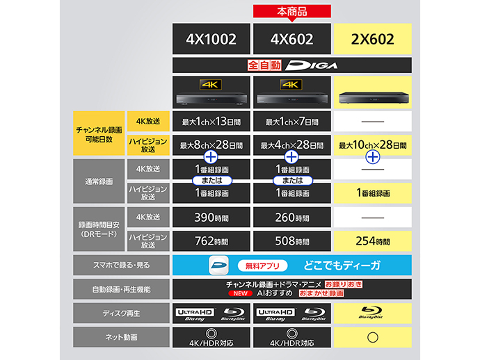 - [4X1002/4X602]全自動録画詳細についてはこちらをご覧ください。