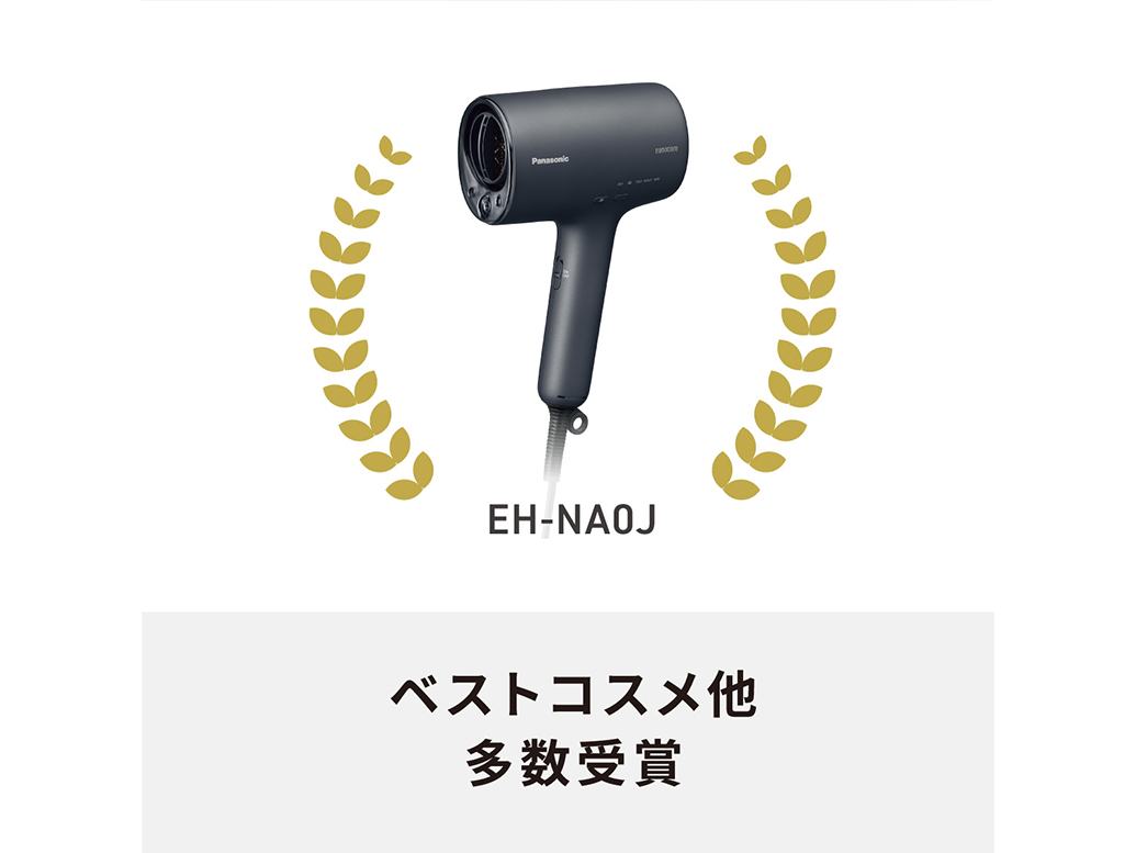 コンパクト&軽量ボディのEH-NA0Jは、折りたたまずに収納できる新デザインを採用し従来モデル(EH-NA0G)よりも体積が約27%減。使いやすさと機能、デザイン性すべてを備えたヘアードライヤー ナノケアです。