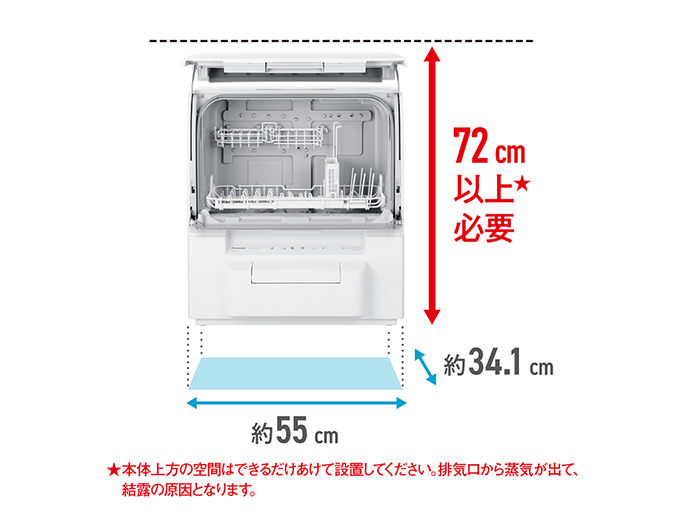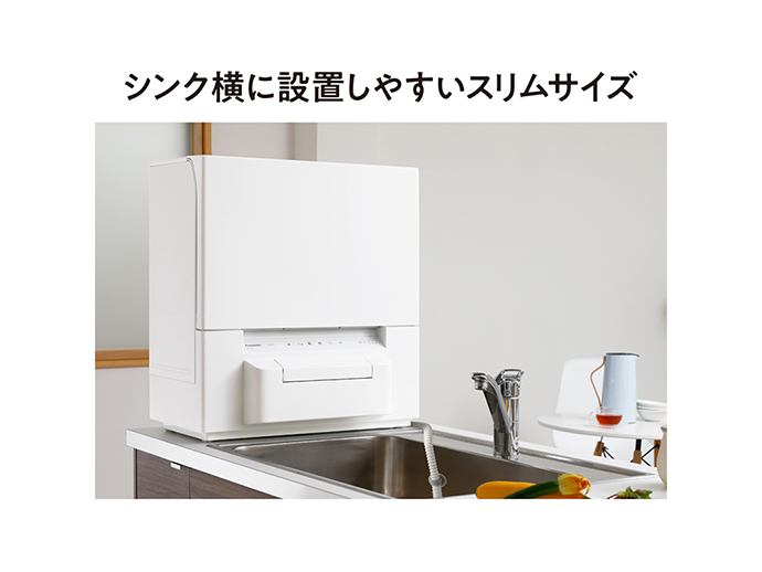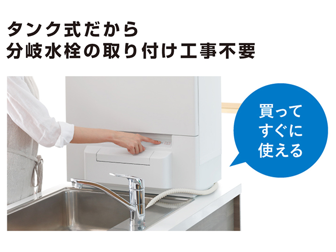 パナソニックの「食器洗い乾燥機(NP-TSP1)」は分岐水栓の取り付け不要なタンク式。工事が不要なので買ってすぐ使えるスリムタイプ!