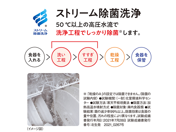 洗うと同時に、洗浄全コースで食器の除菌※5ができる!
