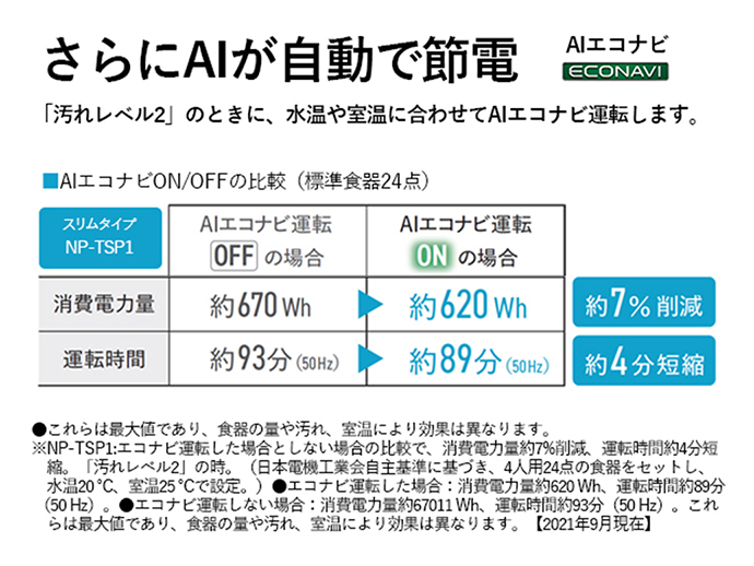 - これらは最大値であり、食器の量や汚れ、室温により効果は異なります。